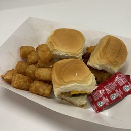 Wow what a pleasant surprise! We got to try The Burnt Trunk for free today because of 420. I ordered a pbj slider and a fried chicken slider. And they were both delicious, the PBJ slider comes with banana slices in it, also had some crunch to it. While the fried chicken was also very tender and juicy. The bun itself was soft and buttery, this couldn't have been better! Would have been 5 stars if there were more side options in addition to tots! Super glad to have discovered The Burnt Trunk, highly recommended:)